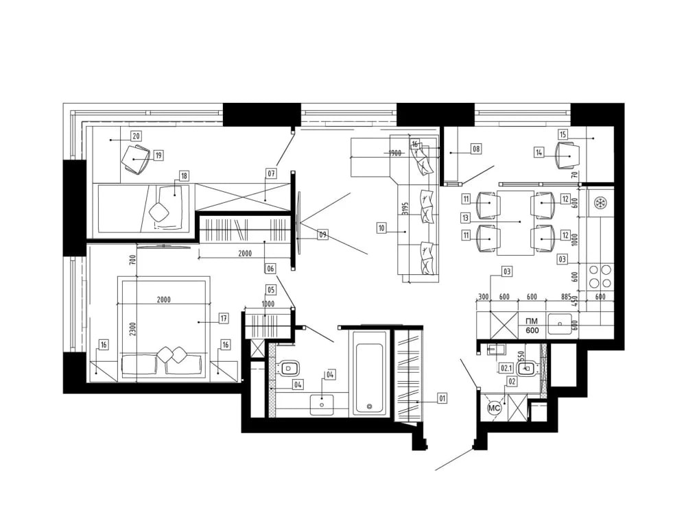 You will get an interior design in modern style or any other style you prefer with full set of drawings documentations and design visualization of the space.